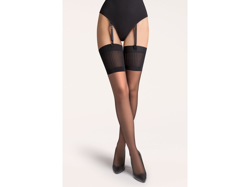 Vzorovaný lem bez silikónu a bez zosilnenia na špičke. - Podväzkove pančuchy dokonale zvýraznia postavu, nohy a ich líniu .